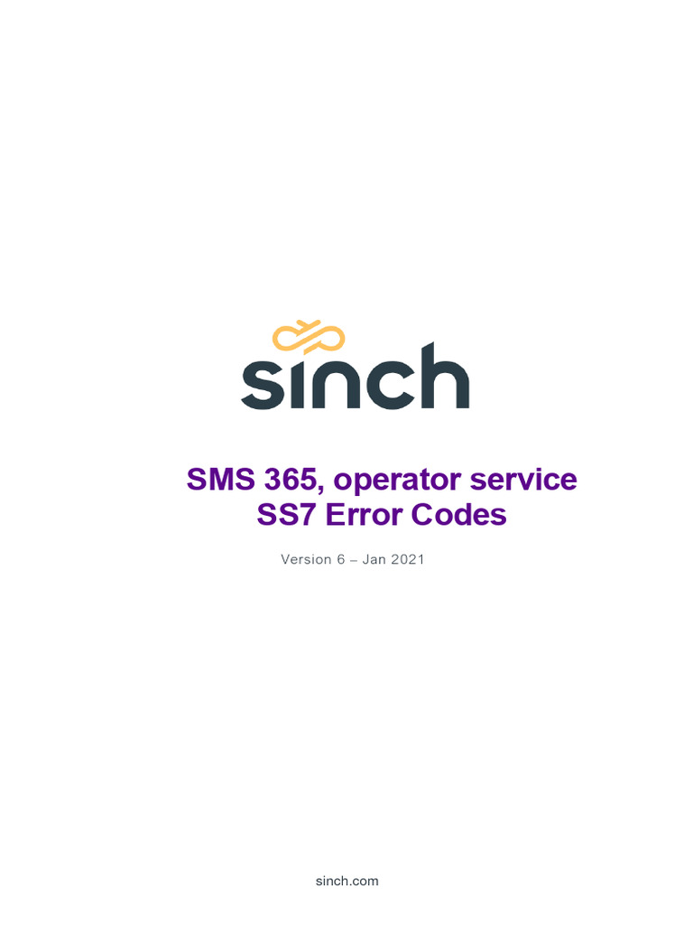 SMS 365, operator service SS7 Error Codes – Version No. 6