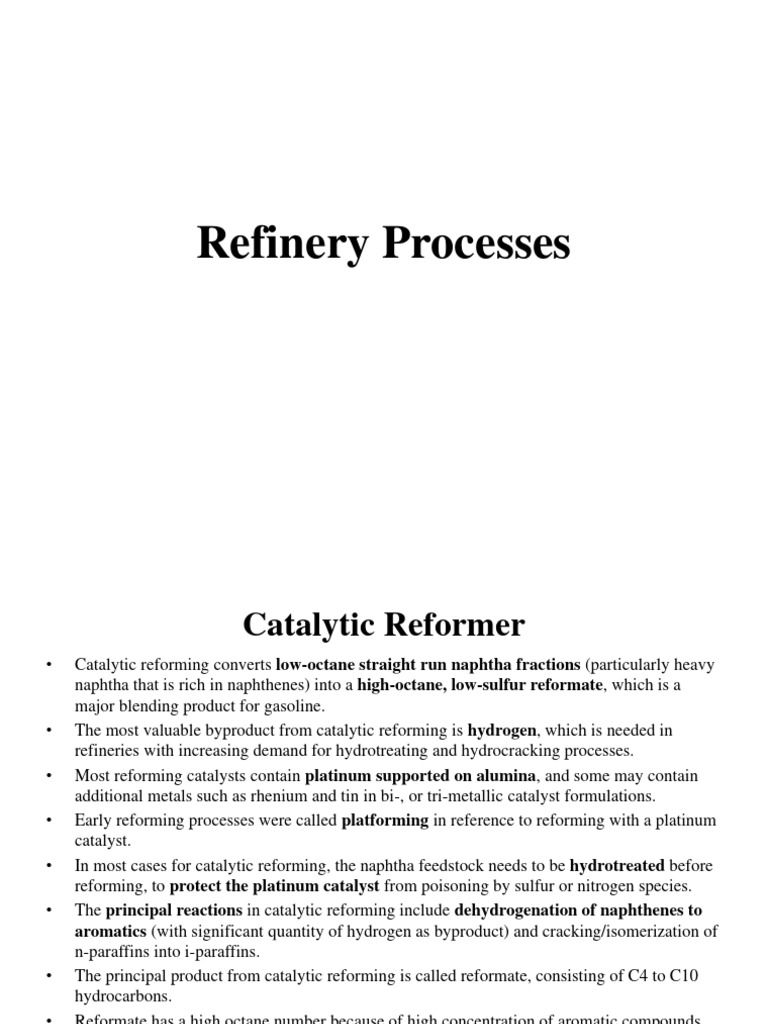 • Catalytic reforming converts low-octane straight run naphtha fractions (particularly heavy