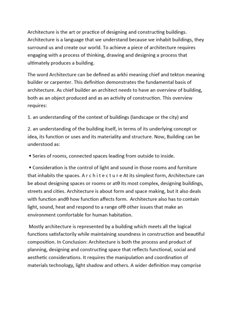 The word Architecture can be defined as arkhi meaning chief and tekton meaning