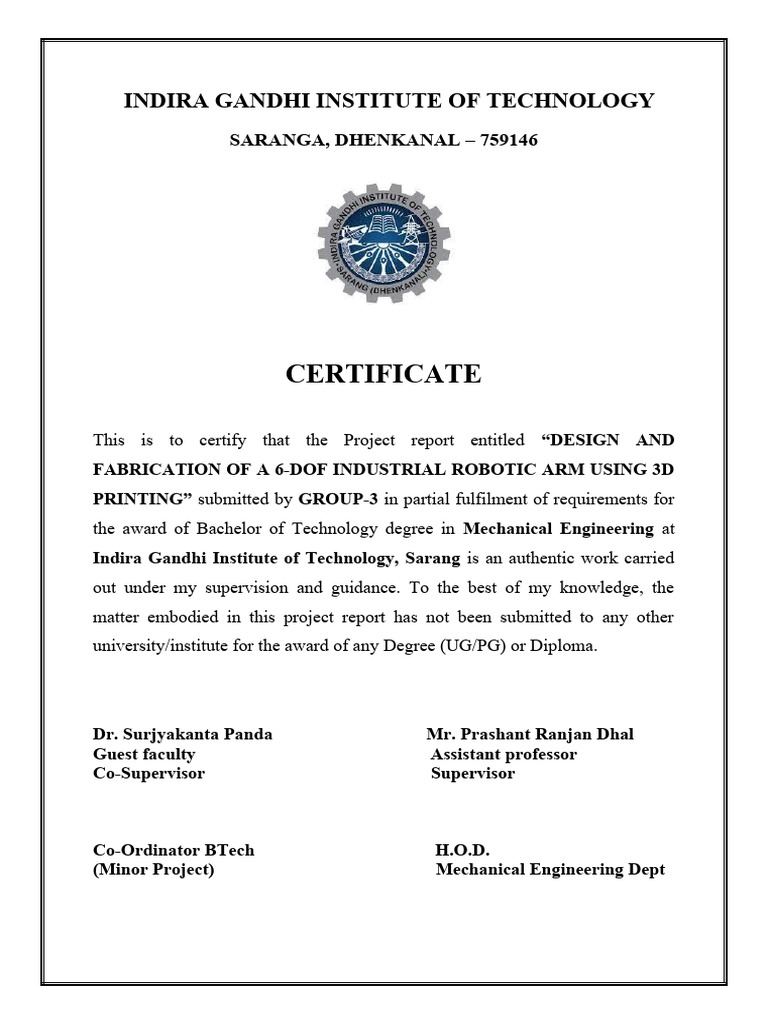 this B.Tech report entitled “DESIGN AND FABRICATION OF A 6-DOF