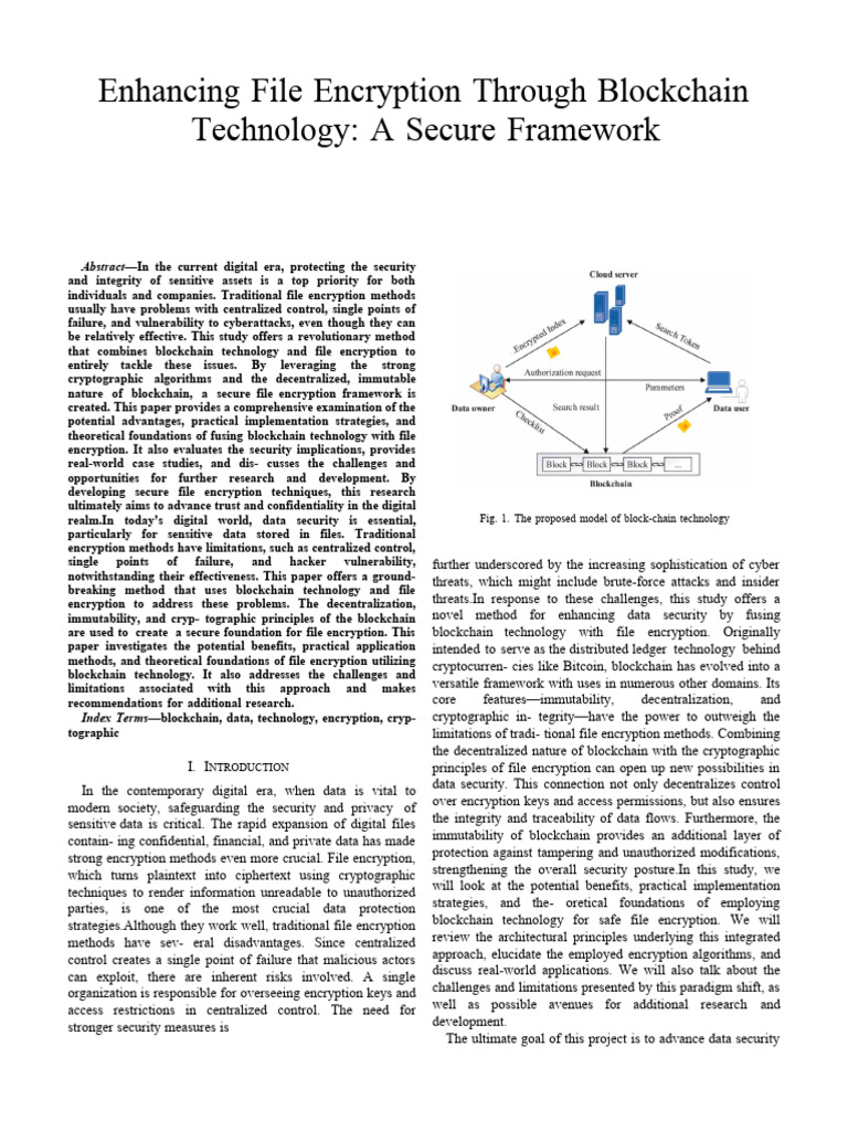 methods, and theoretical foundations of file encryption utilizing cryptocurren- cies like Bitcoin, blockchain has evolved into a