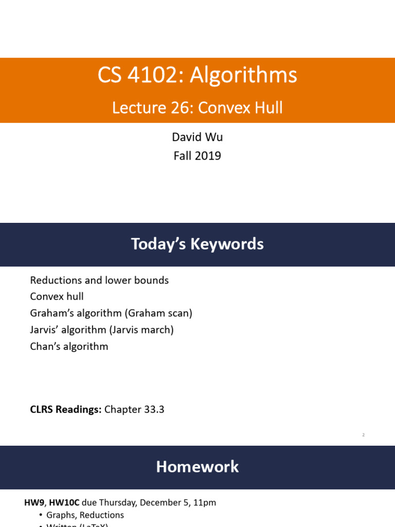 Running time of Graham’s algorithm: same as best sorting algorithm