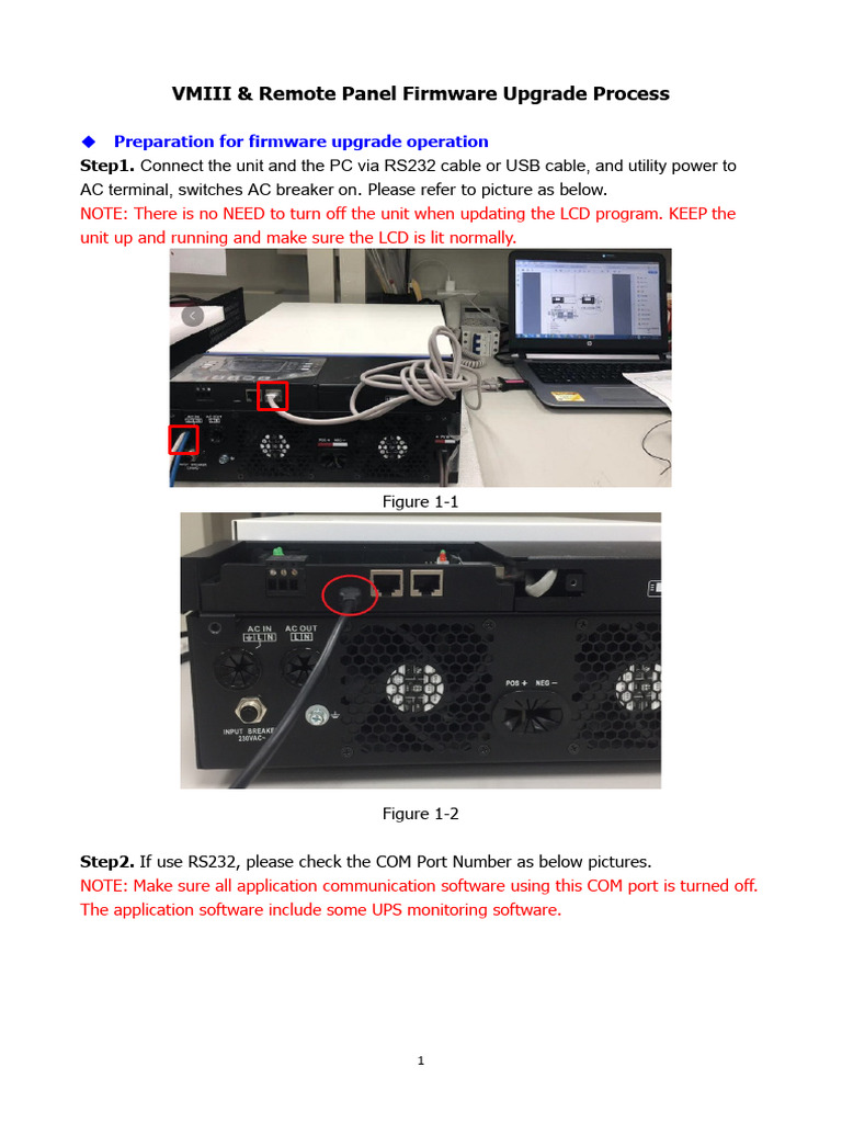 Step1. Connect the unit and the PC via RS232 cable or USB cable, and utility power to