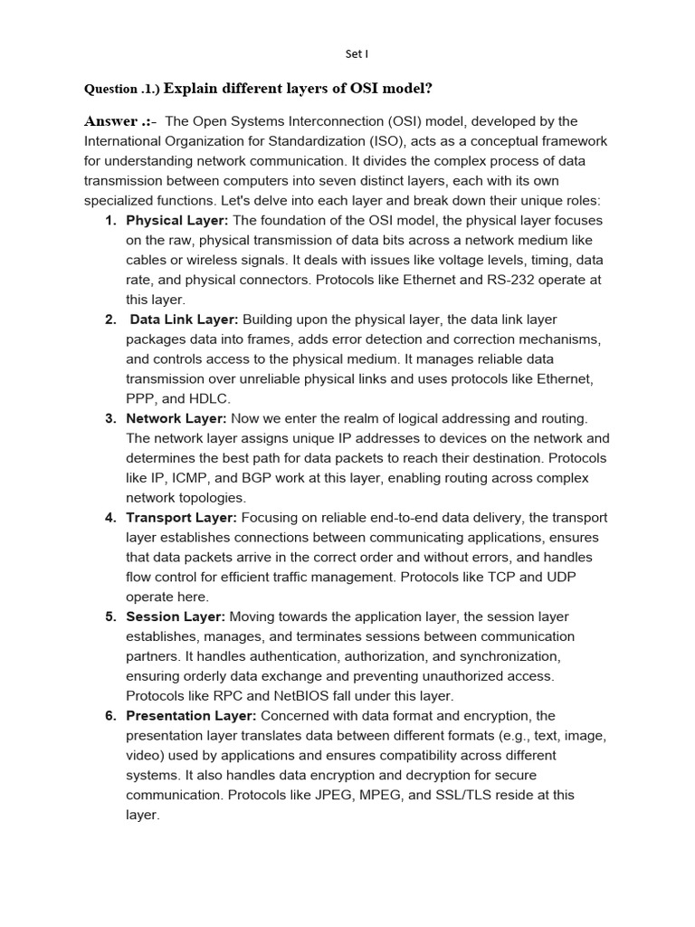 Answer .:- The Open Systems Interconnection (OSI) model, developed by the