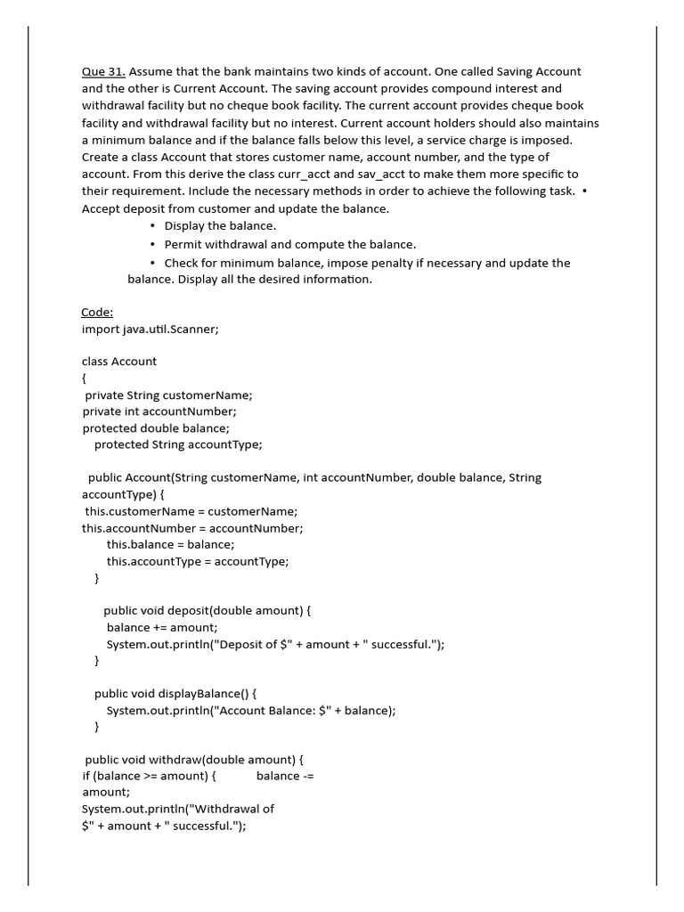 System.out.println("\nCurrent Account:"); currentAccount.displayBalance();