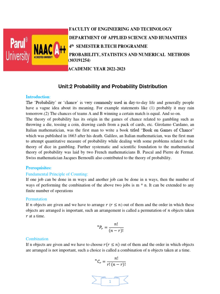 repeated under identical conditions. For example, when a coin is tossed it may turn up a head or