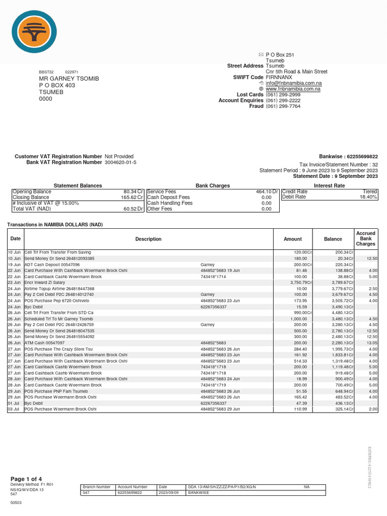 MR GARNEY TSOMIB SWIFT Code FIRNNANX
