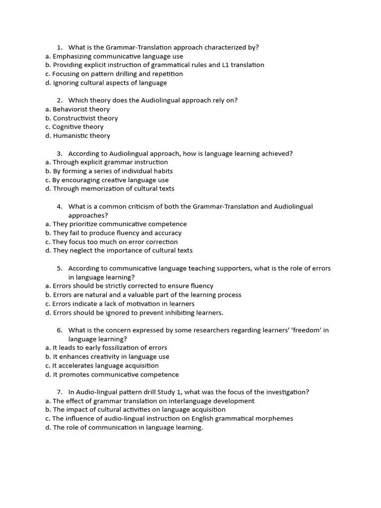 12. What does the research suggest about learners receiving audiolingual or grammar-