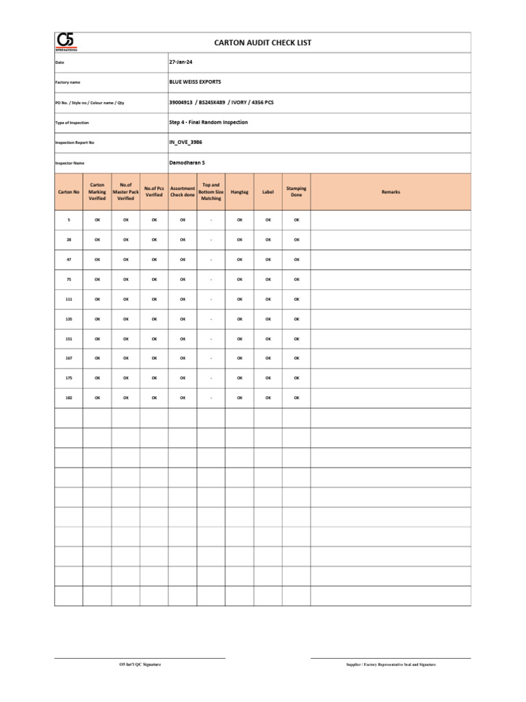 O5 Int'l QC Signature Supplier / Factory Representative Seal and Signature