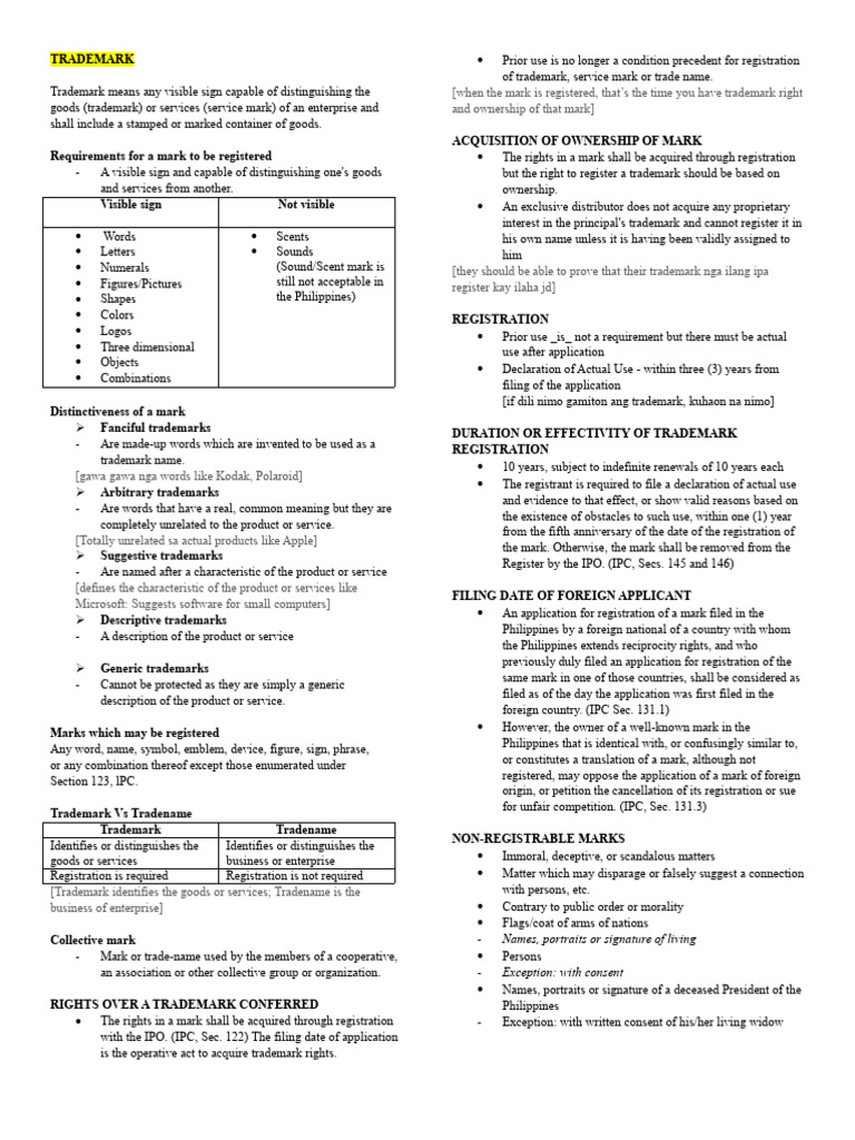 Trademark Vs Tradename for unfair competition. (IPC, Sec. 131.3)