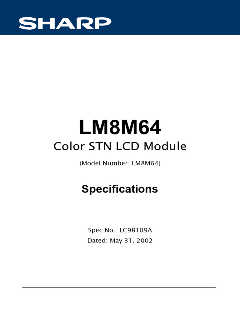 reliability. Contact SHARP in order to obtain the latest specification sheets before using any SHARP's
