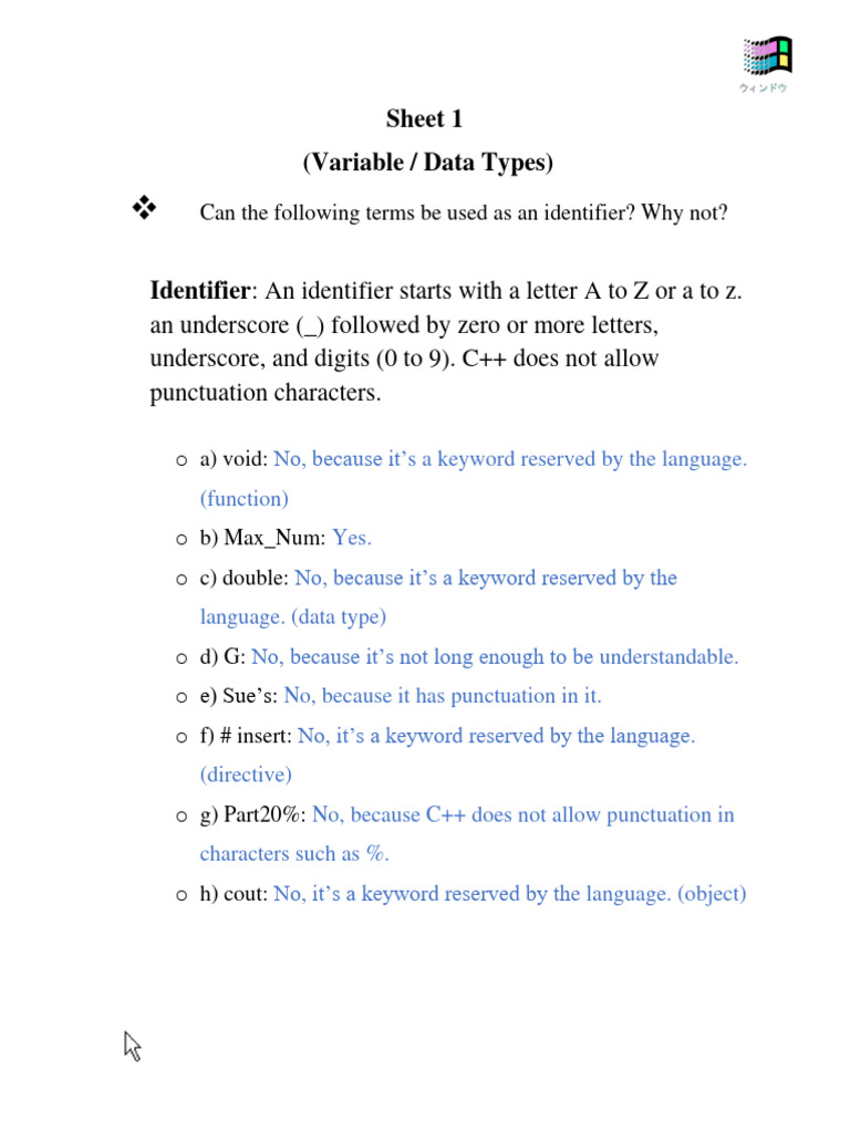 o g) Part20%: No, because C++ does not allow punctuation in