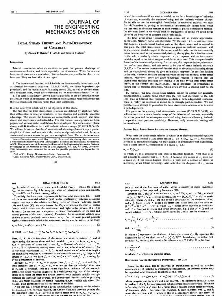 REFERENCE: Bazant, Zdenek P., and Tsubaki, Tatsuya, "Total Strain Theory and