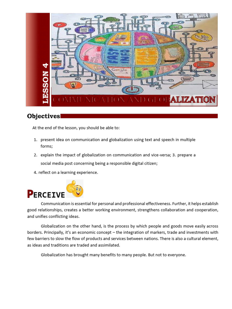 2. explain the impact of globalization on communication and vice-versa; 3. prepare a