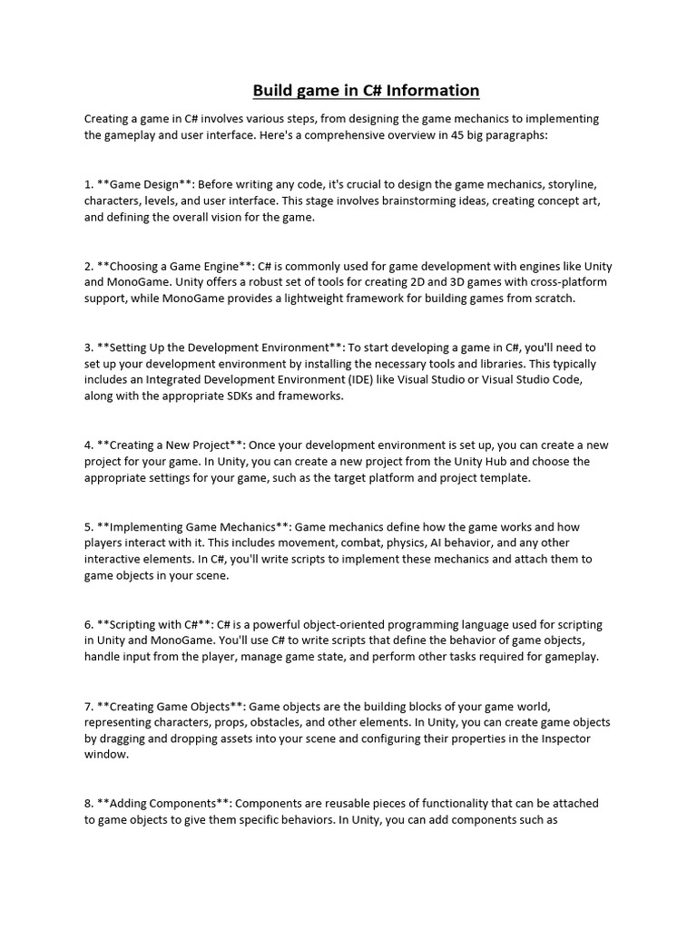 Creating a game in C# involves various steps, from designing the game mechanics to implementing