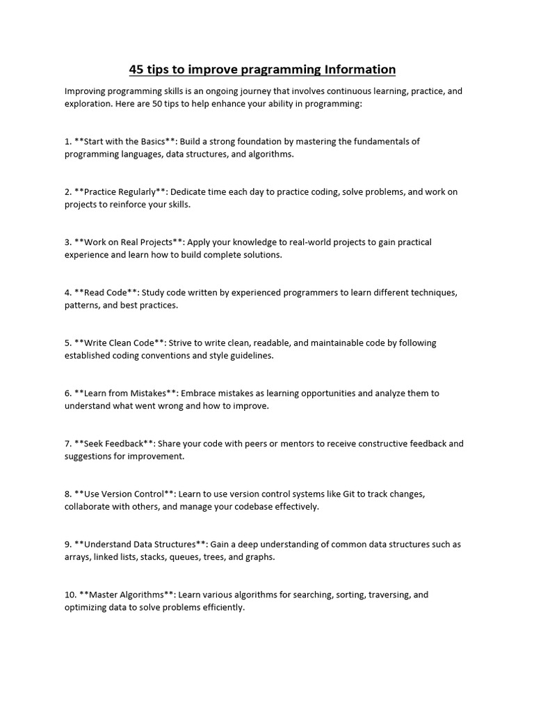exploration. Here are 50 tips to help enhance your ability in programming: