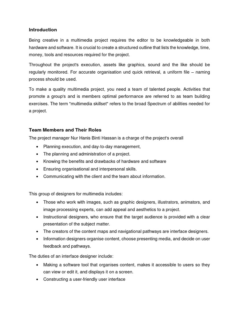 To make a quality multimedia project, you need a team of talented people. Activities that