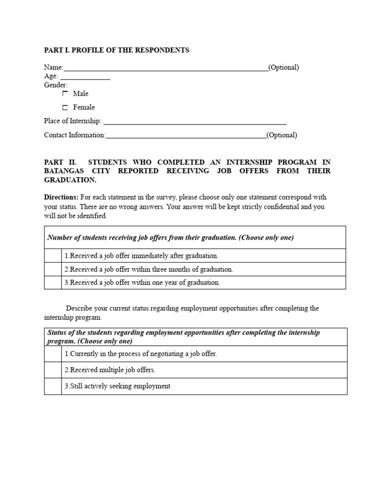 PART II. STUDENTS WHO COMPLETED AN INTERNSHIP PROGRAM IN