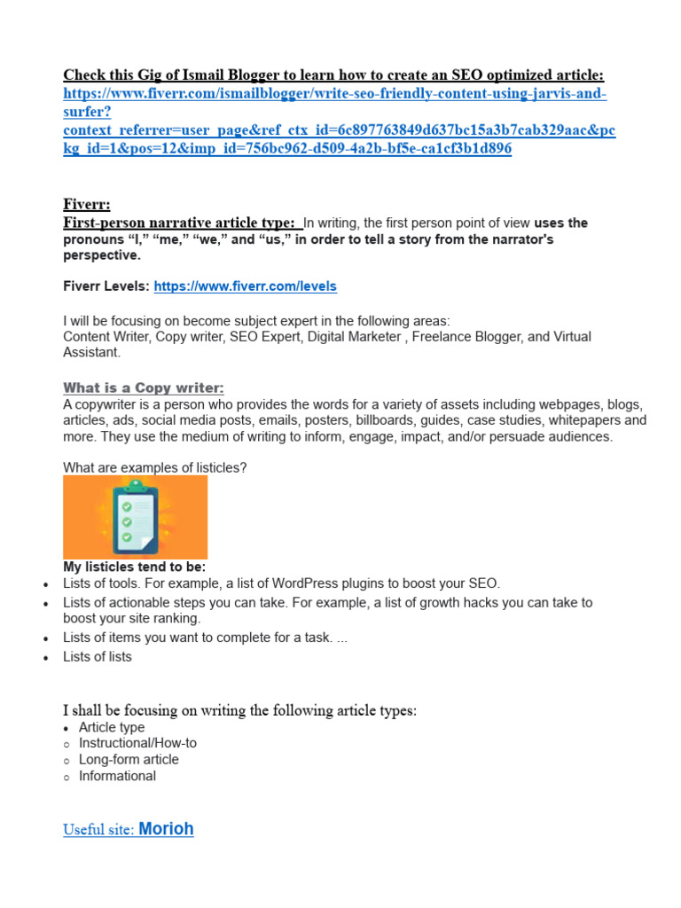 Check this Gig of Ismail Blogger to learn how to create an SEO optimized article: