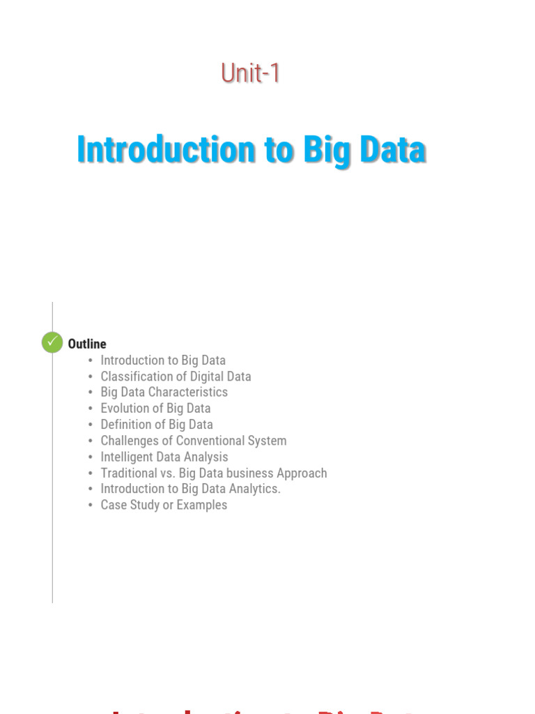 Traditional data is generated in enterprise Big data is generated in outside and enterprise