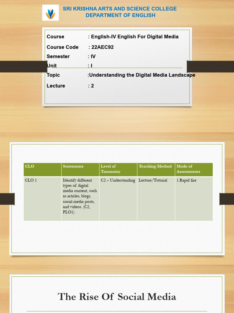 CLO 1 Identify different C2 – Understanding Lecture/Tutorial 1.Rapid fire