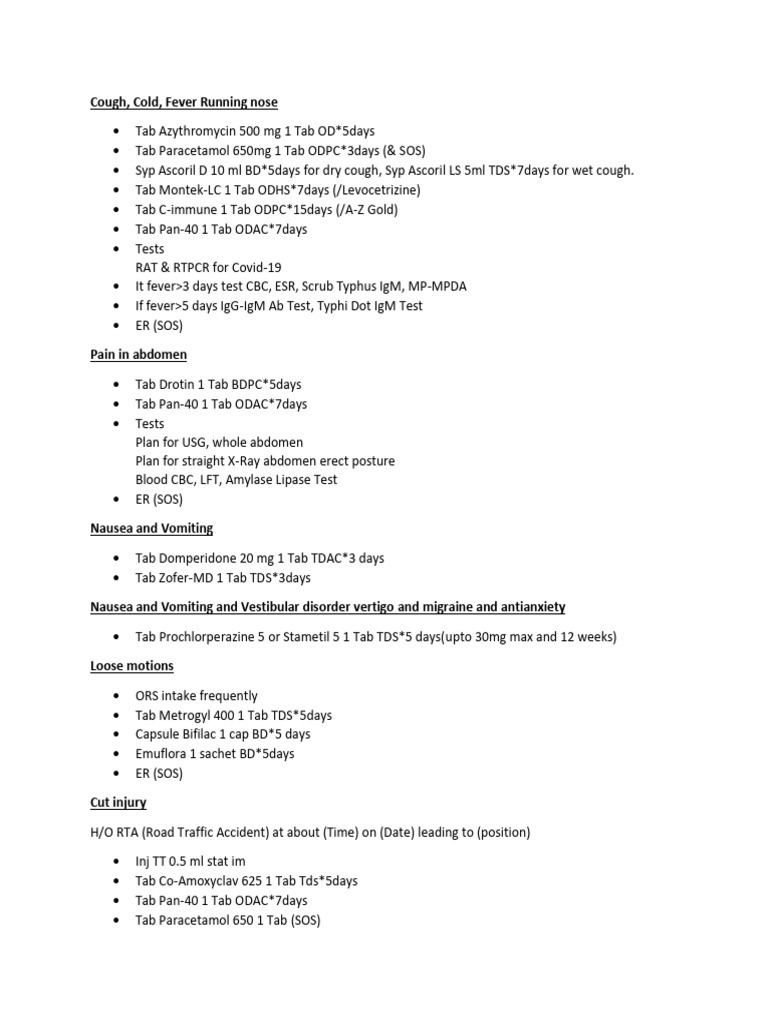 • Tab Paracetamol 650 1 Tab BDPC*3days