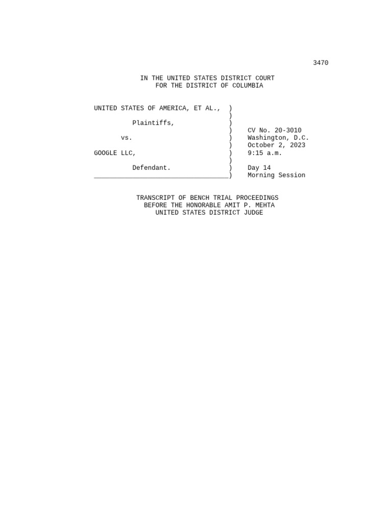TRANSCRIPT OF BENCH TRIAL PROCEEDINGS