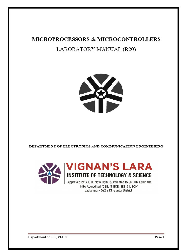 MICROPROCESSORS AND MICROCONTROLLERS LAB (R20)