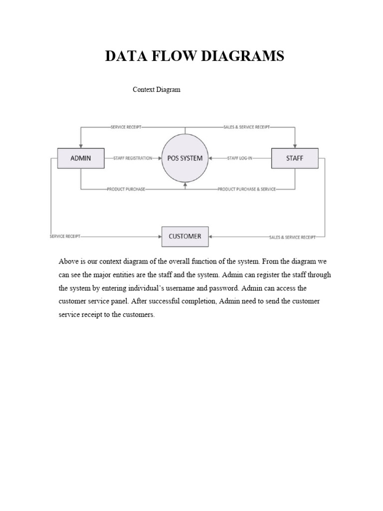 Above is our level 0 diagram of POS System. Here we can see Admin need to enter staff details