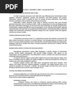 organizations achieve greater efficiencies by automating parts of these processes or by helping organizations redesign and streamline them. Firms can become more flexible and efficient by coordinating their business processes closely, and, in some cases, integrating these processes so they are focused on efficient management of resources and customer service. 5) Describe the information systems supporting the major business functions: sales and marketing, manufacturing and production, finance and accounting, and human resources. At each level of the organization, information systems support the major functional areas of the business. Sales and marketing systems help the firm identify customers for the firms products or services, develop products and services to meet customersneeds, promote the products and services, sell the products and services, and provide ongoing customer support. Manufacturing and production systems deal with the planning, development, and production of products or services, and control the flow of production. Finance and accounting systems keep track of the firms financial assets and fund flows. Human resources systems maintain employee records; track employee skills, job performance, and training; and support planning for employee compensation and career development. 6) Evaluate the role played by systems serving the various levels of management in a business and their relationship to each other. There are four major types of information systems in contemporary organizations serving operational, middle, and senior management. Systems serving operational management are transaction processing systems (TPS), such as payroll or order processing, that track the flow of the daily routine transactions necessary to conduct business. MIS and DSS provide middle management with reports and access to the organizations current performance and historical records. Most MIS reports condense information from TPS and are not highly analytical. DSS support management decisions when these decisions are unique, rapidly changing, and not specified easily in advance. They have more advanced analytical models and data analysis capabilities than MIS and often draw on information from external as well as