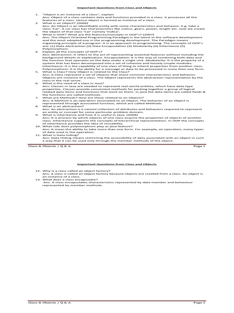 Class & Objects / Q & A Page 2