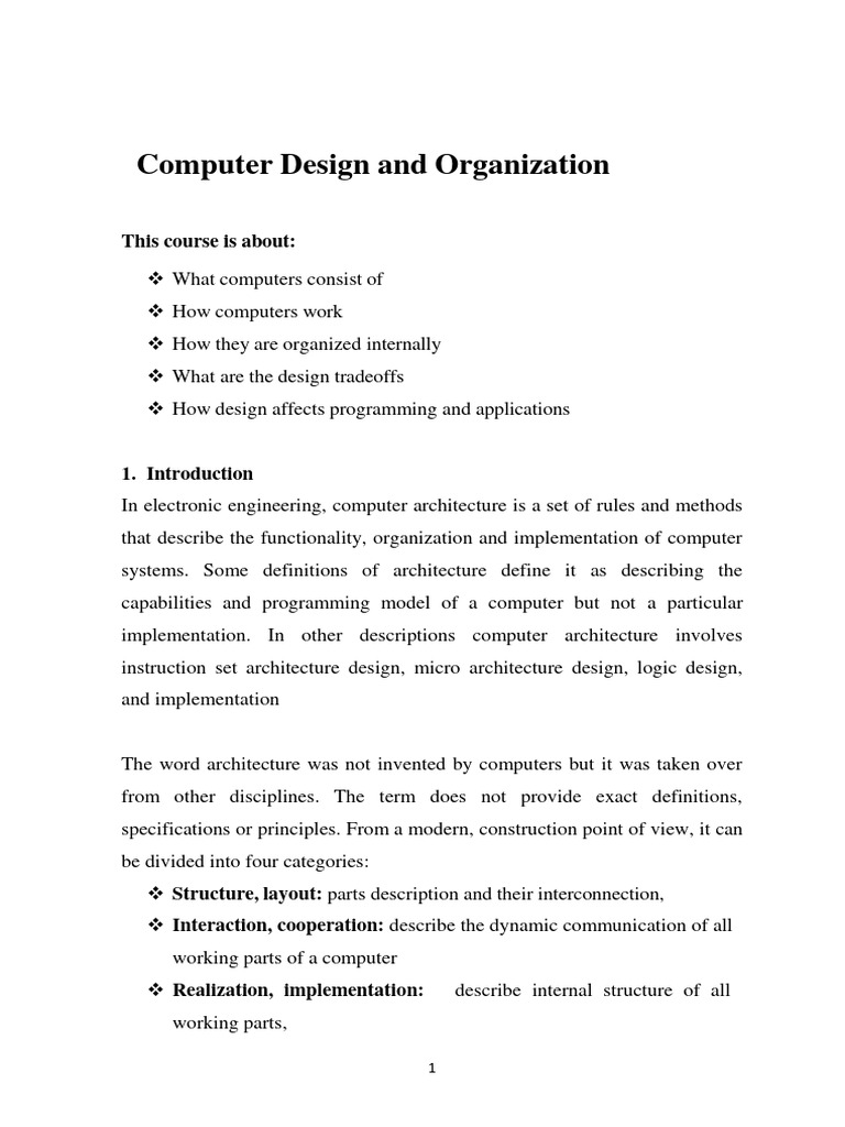 that describe the functionality, organization and implementation of computer