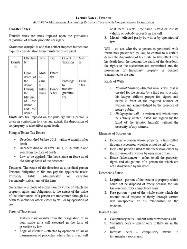 for the benefit of the to be declared and taxed to 1. Specific Tax – tax imposed which is based on