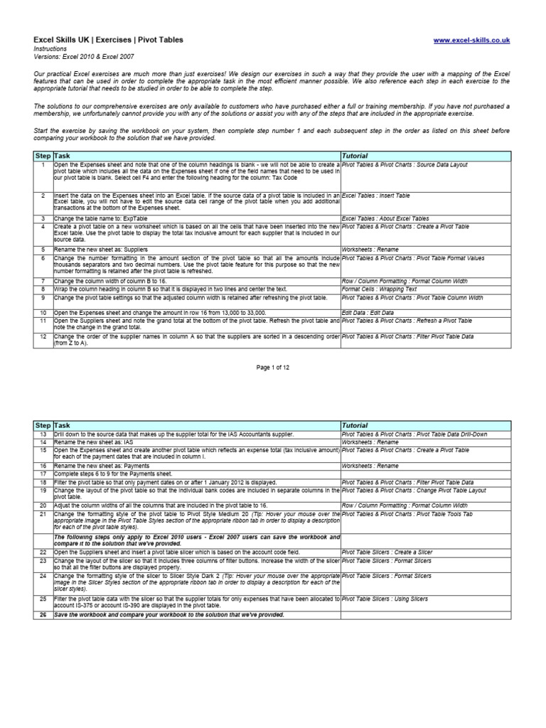 Excel Skills UK | Exercises | Pivot Tables www.excel-skills.co.