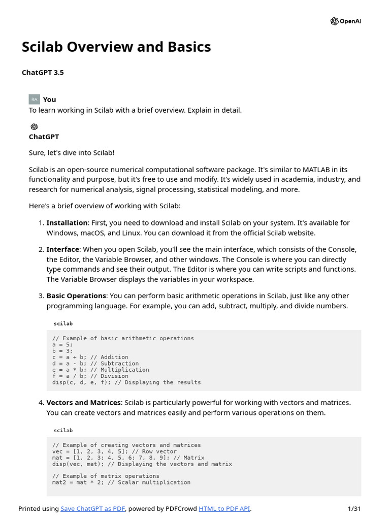 This is just a brief overview of Scilab. As you explore further, you'll discover its extensive capabilities