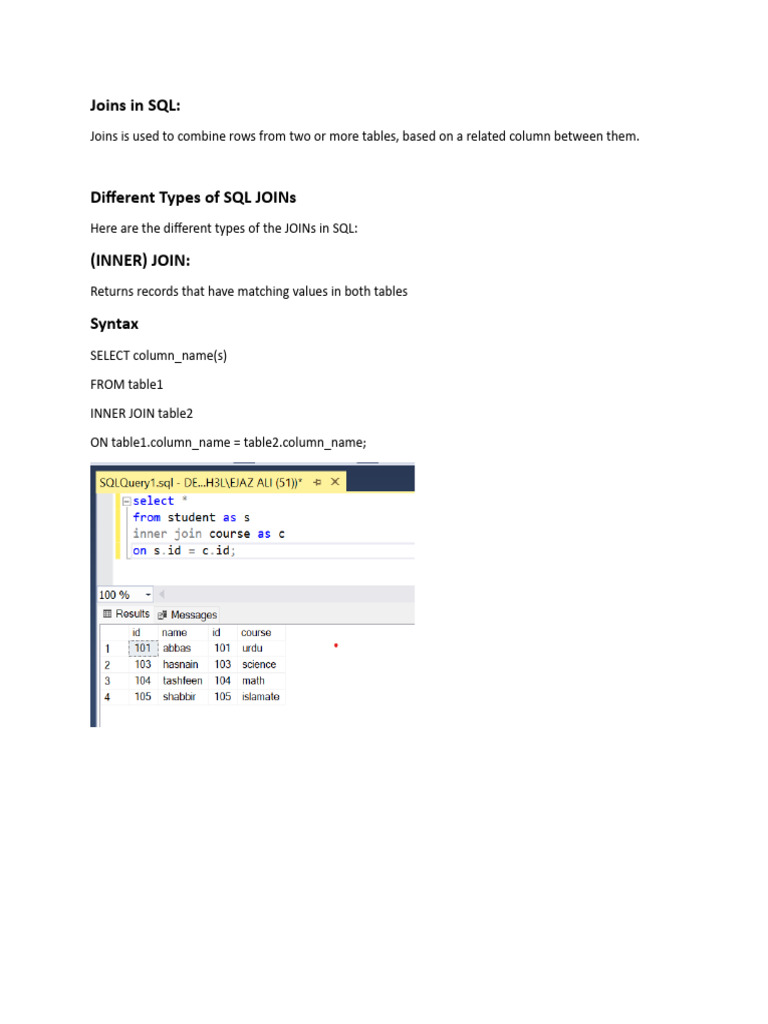 Joins in SQL: