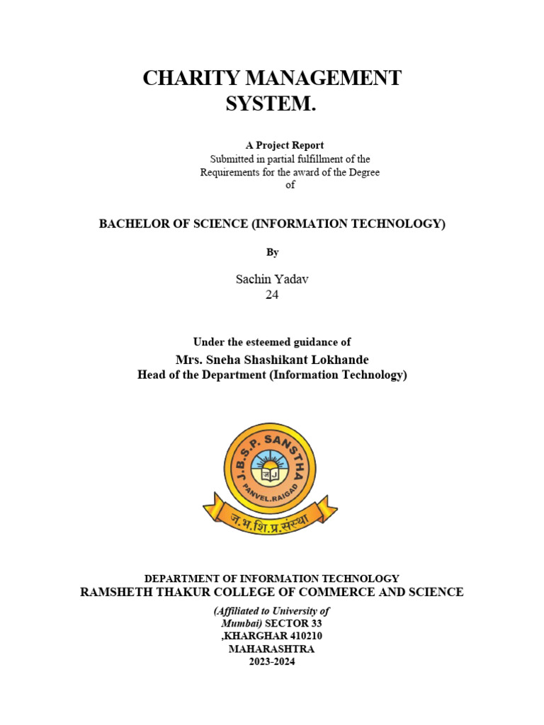This is to certify that the project entitled, " CHARITY MANAGEMENT SYSTEM ", is bonafied work of