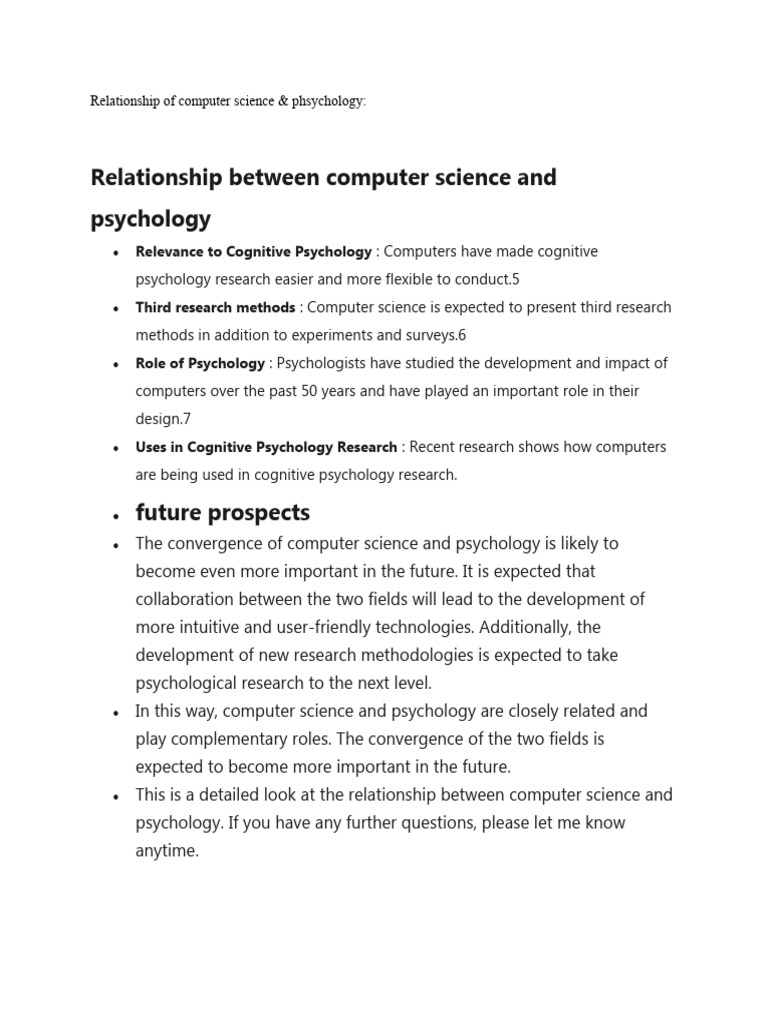 Psychology and computer science are very closely related.in fact they are more