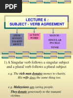 7 "he main verb of that same sentence. In particular, singular subjects take singular verbs and