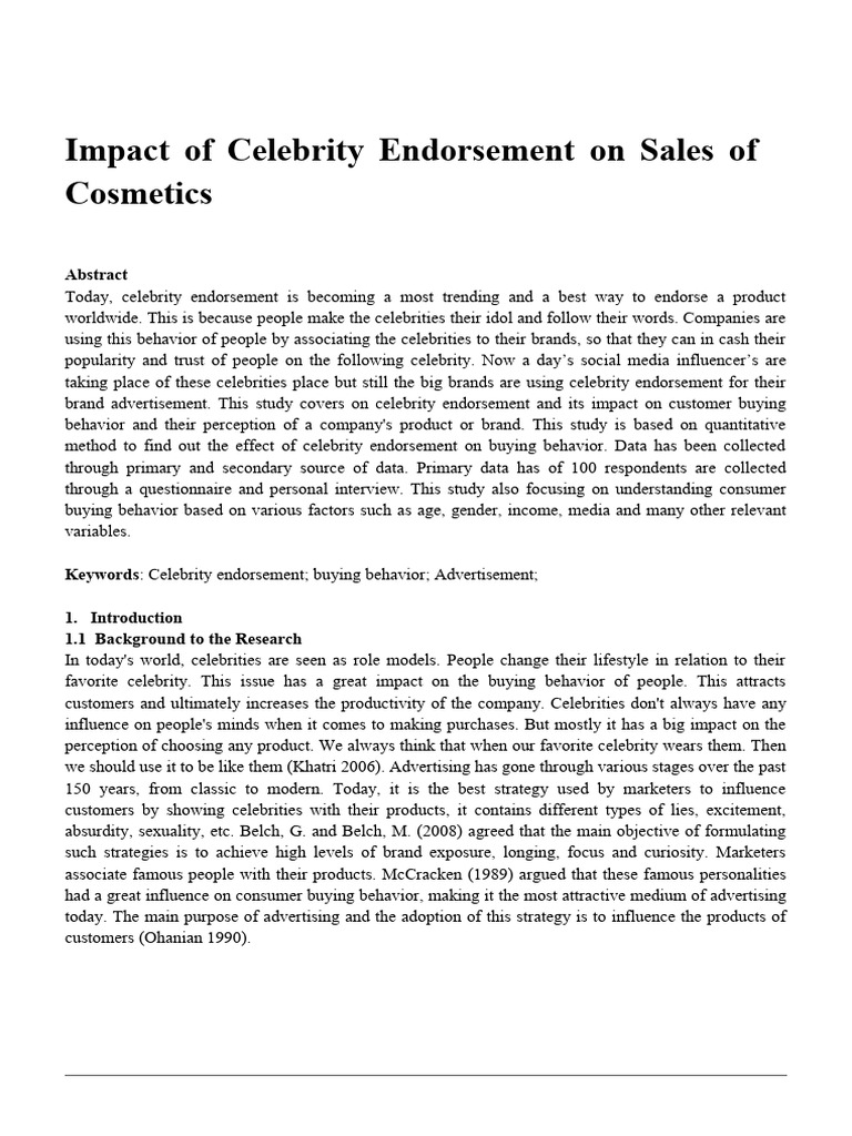 Impact of Celebrity Endorsement on Sales of