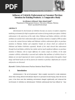Keywords: Celebrity endorsement; buying behavior; Advertisement;