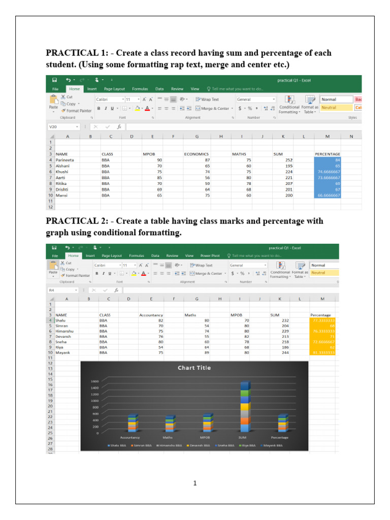 PRACTICAL 1: - Create a class record having sum and percentage of each