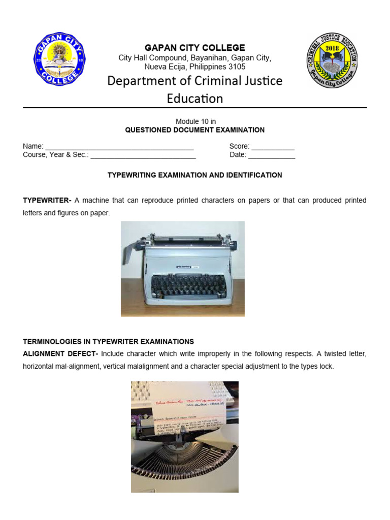 TYPEWRITING EXAMINATION AND IDENTIFICATION