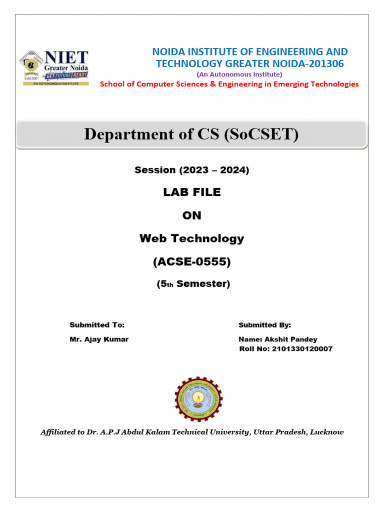 Affiliated to Dr. A.P.J Abdul Kalam Technical University, Uttar Pradesh, Lucknow