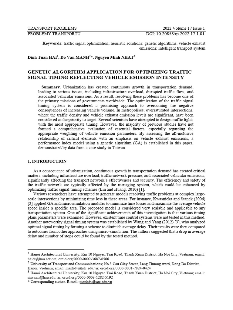 Keywords: traffic signal optimization; heuristic solutions; genetic algorithms; vehicle exhaust