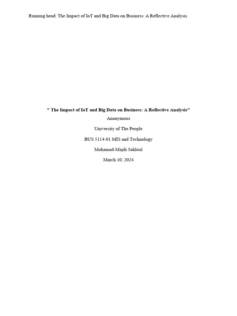 Running head: The Impact of IoT and Big Data on Business: A Reflective Analysis