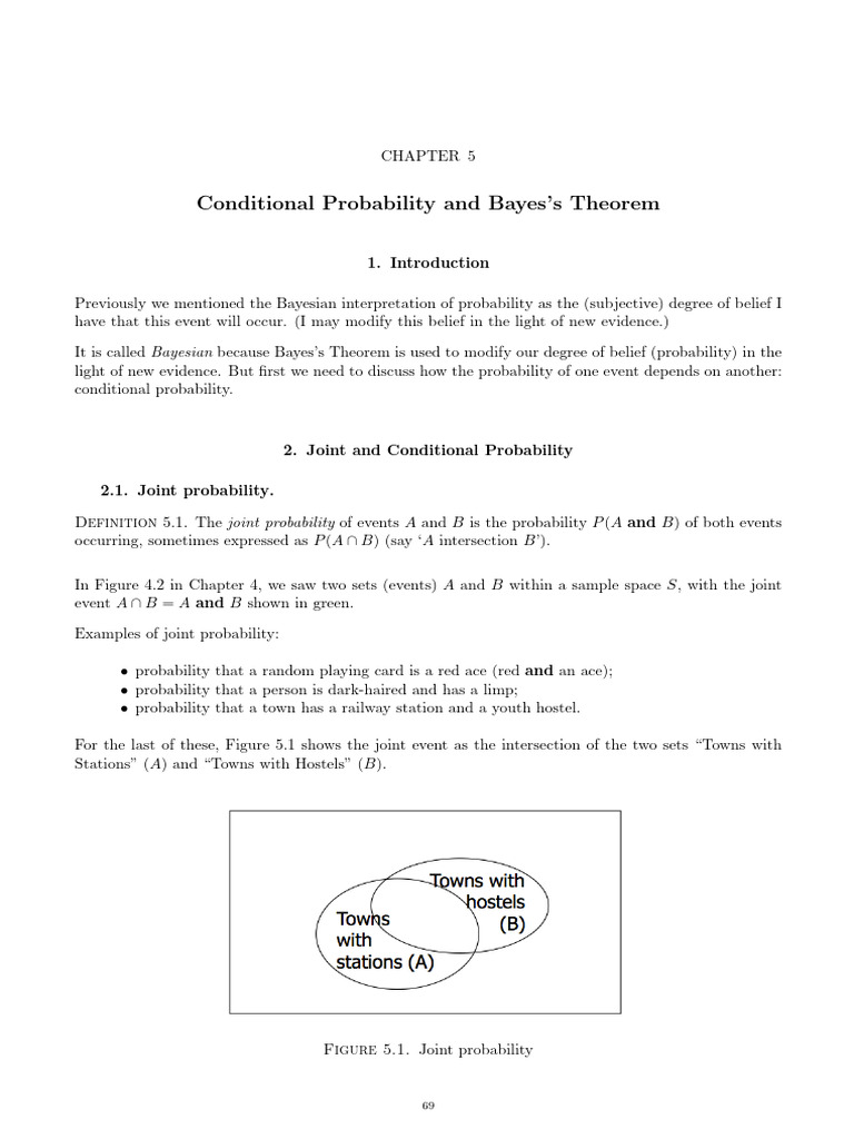For the last of these, Figure 5.1 shows the joint event as the intersection of the two sets “Towns with