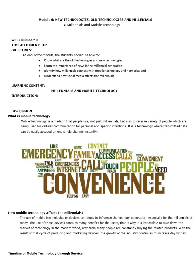 Module 6: NEW TECHNOLOGIES, OLD TECHNOLOGIES AND MILLENIALS