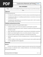 SHELL AS PARTIAL REPLACEMENT OF COARSE AGGREGATE AND BINDING