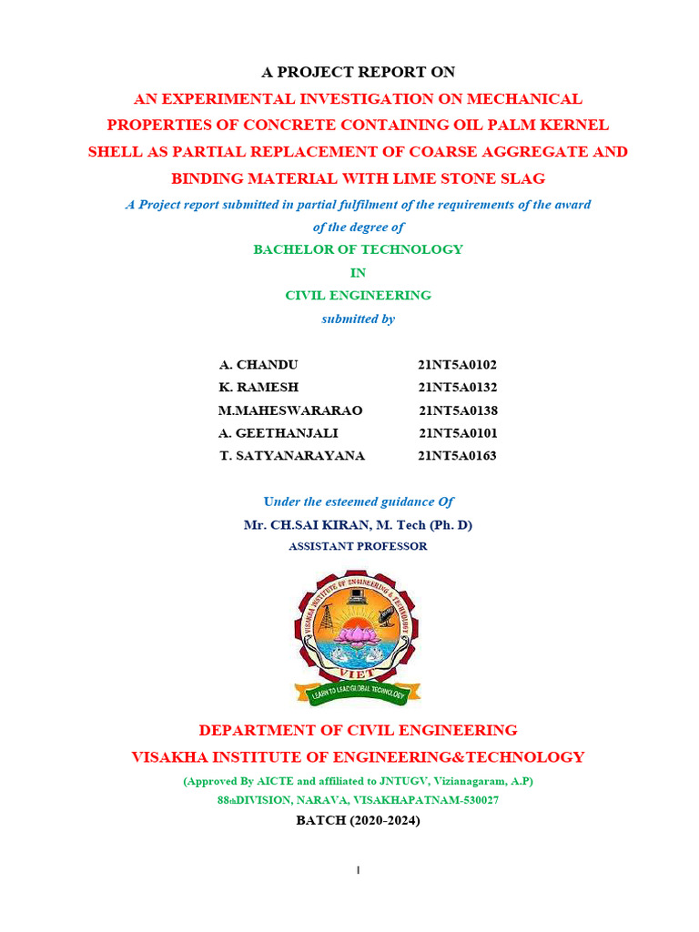 MATERIAL WITH LIME STONE SLAG". submitted by A. CHANDU (21NT5A0102), K.